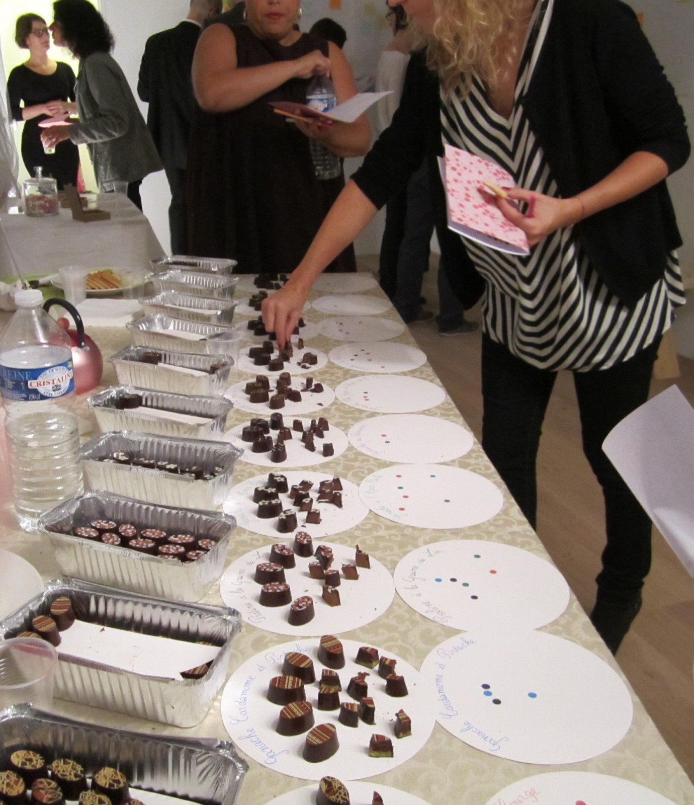 La soirée dont je parlais en introduction, représente la deuxième étape de sélection : une trentaine de personnes ont été invitées à constituer l’équipe choc’marketing de Carine, pour l’aider à sélectionner les 5 meilleures recettes du top 10 susmentionné.